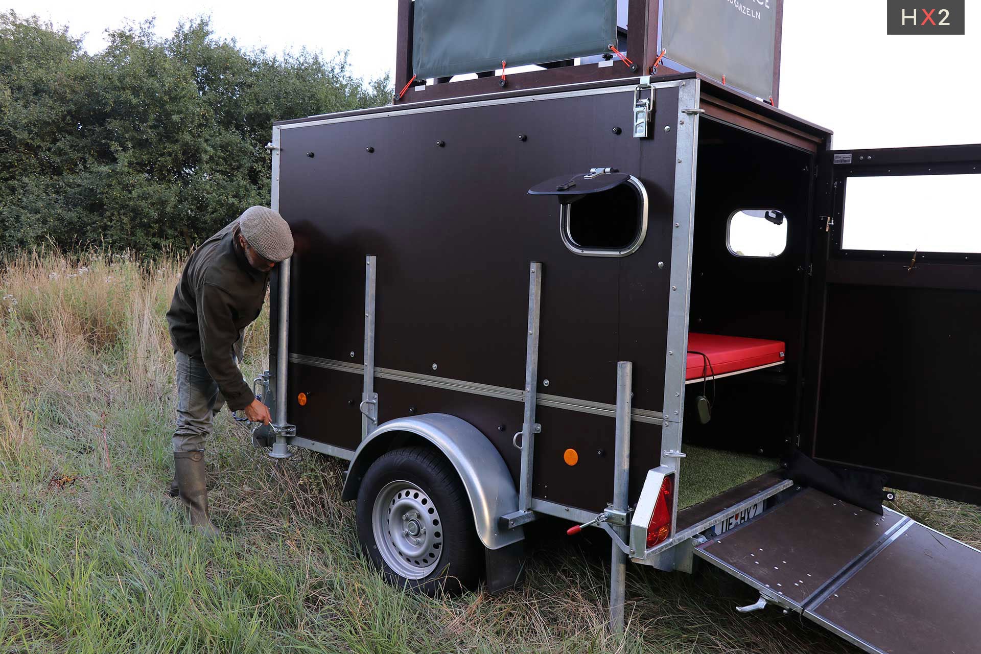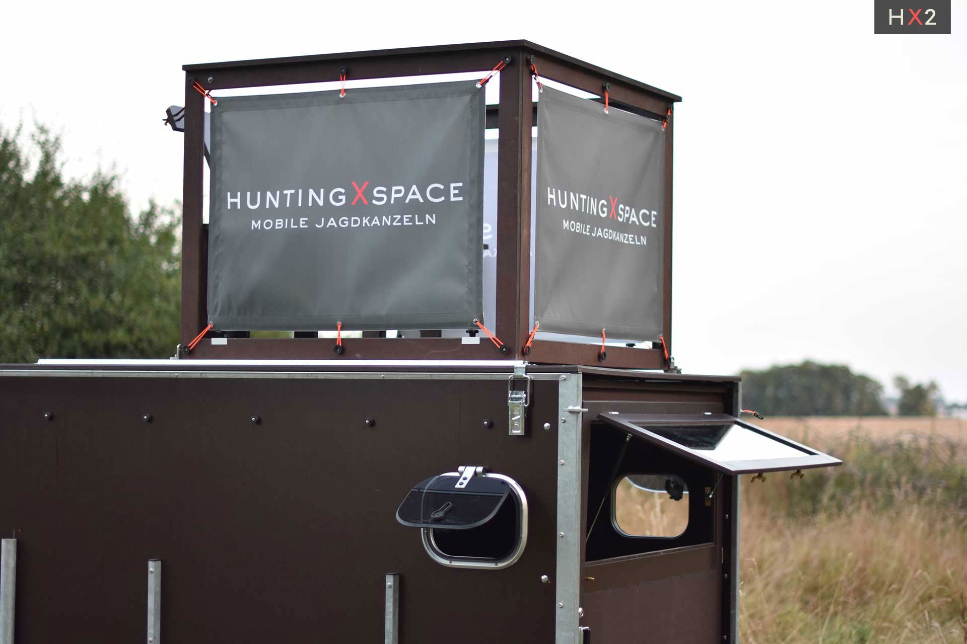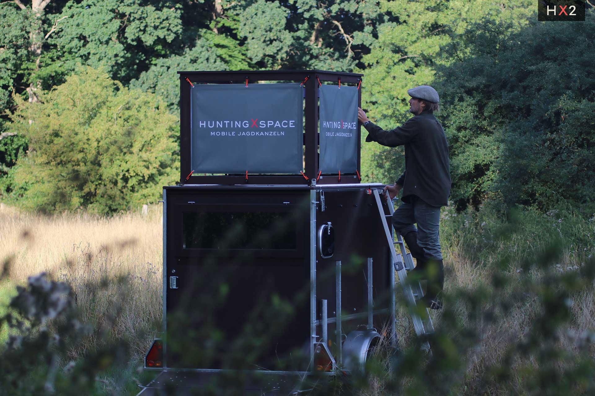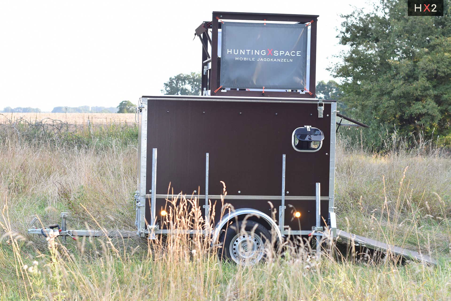 Die Kanzel kann optional auf dem eigenen Anhänger mit einer Mindestgröße von 2,5 m x 1,3 m verbaut werden.