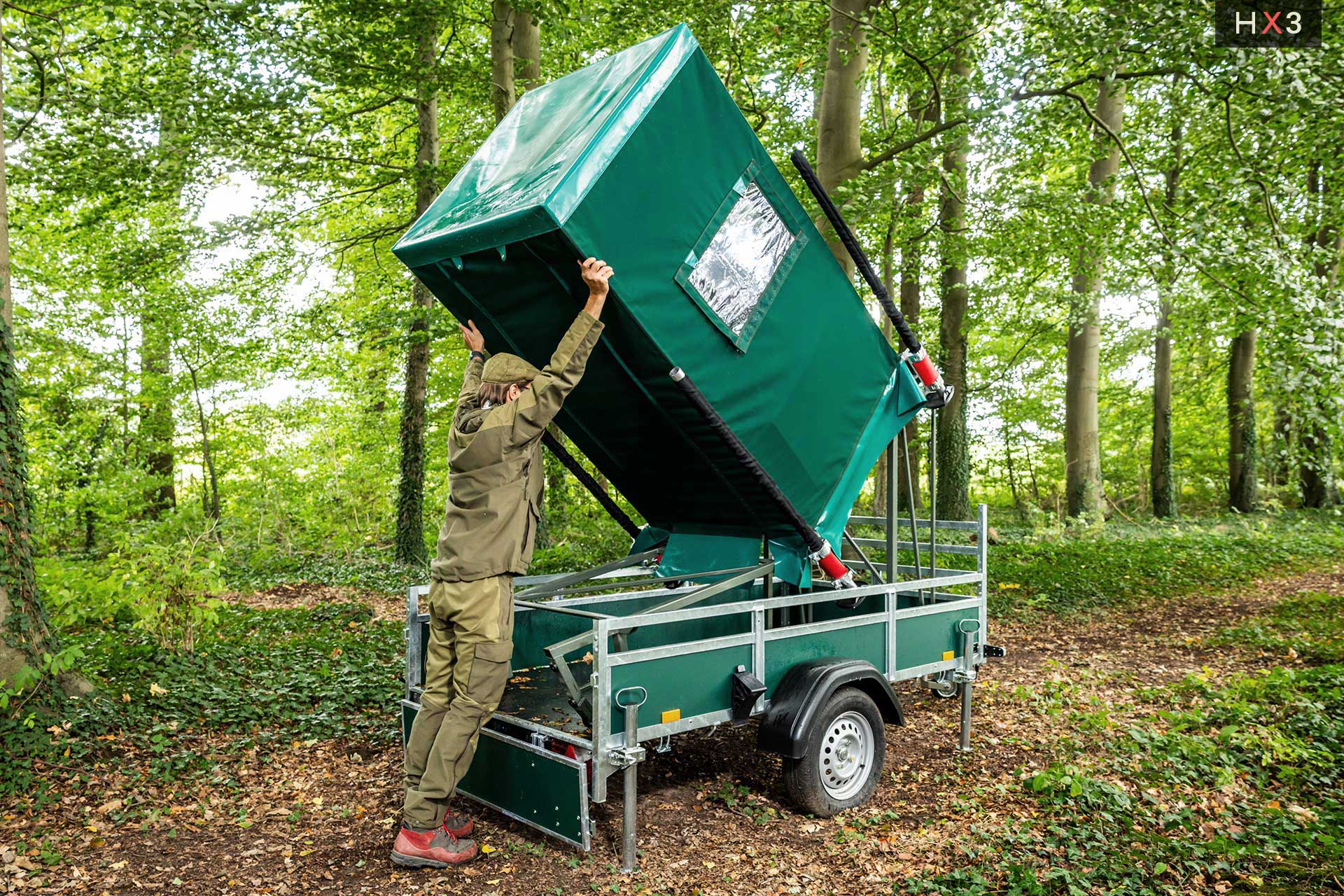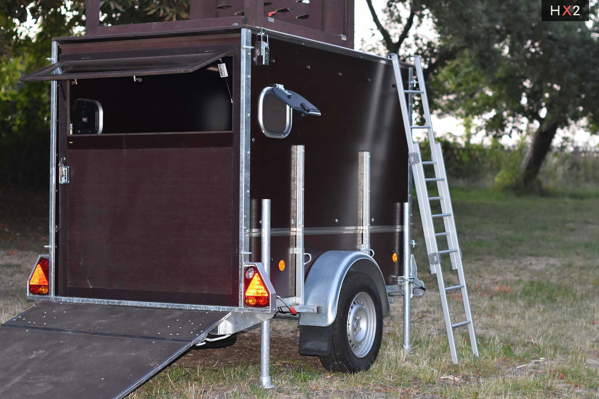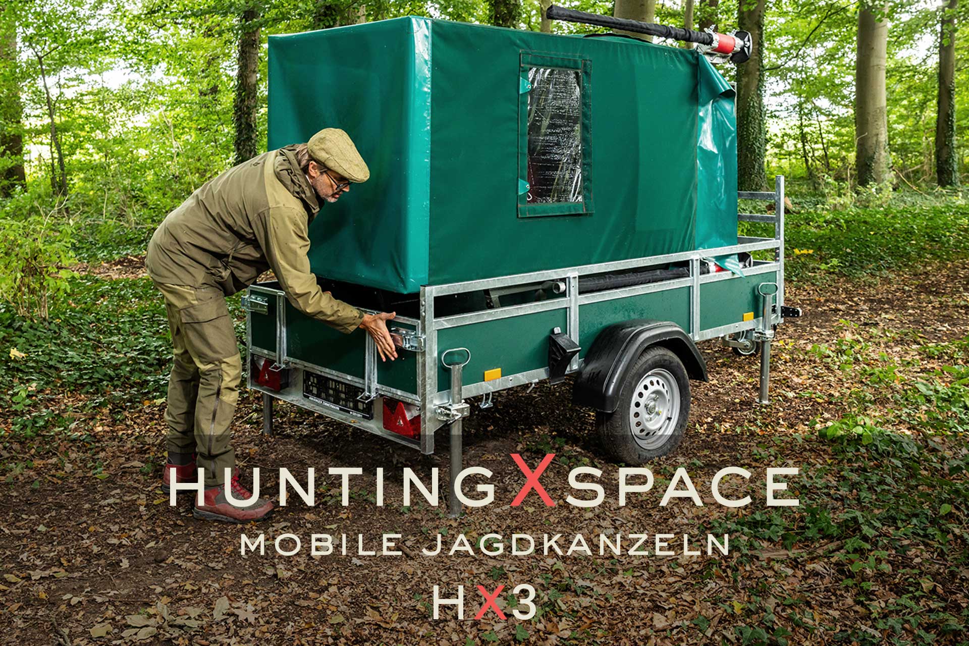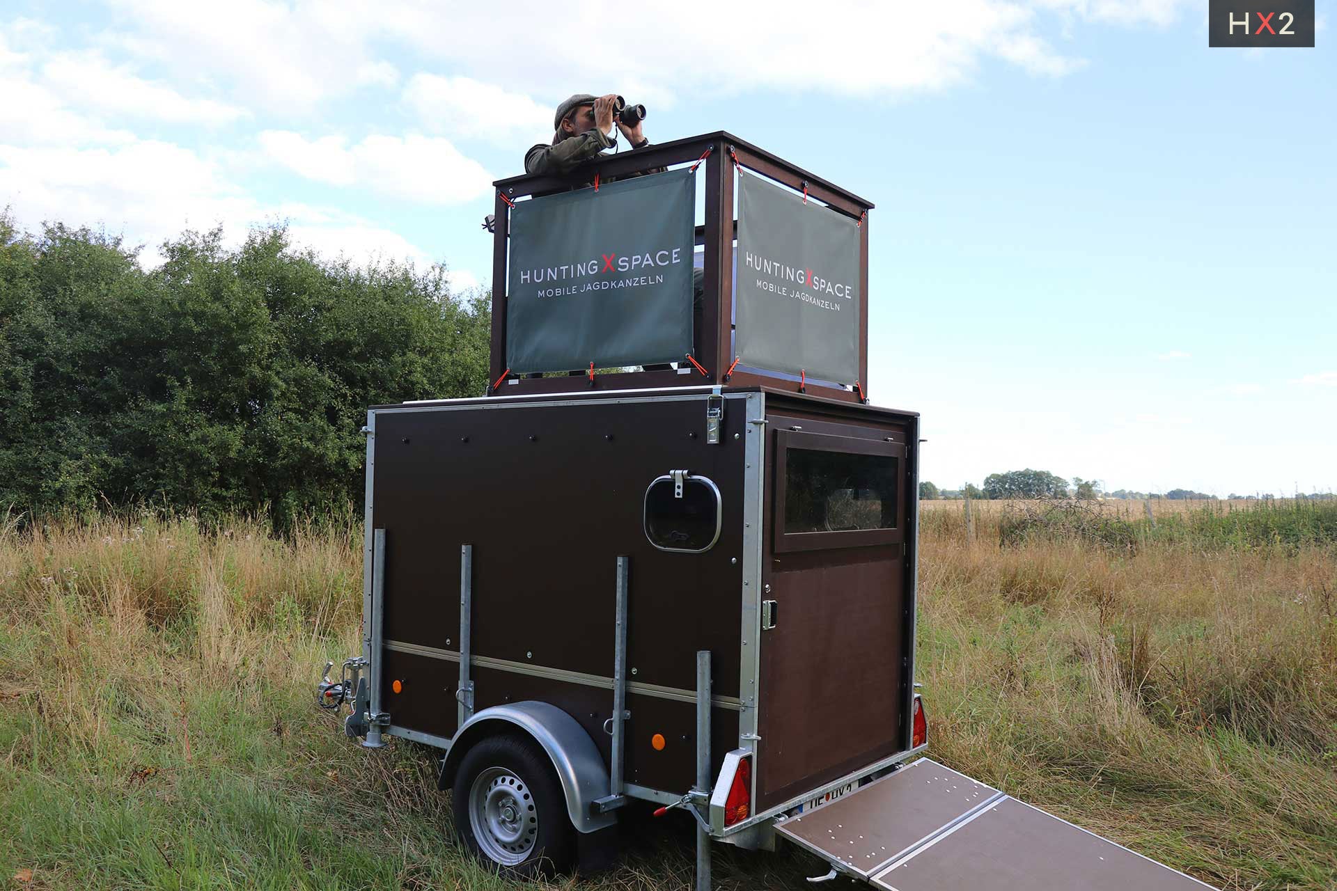 Die Kanzel kann optional auf dem eigenen Anhänger mit einer Mindestgröße von 2,5 m x 1,3 m verbaut werden.